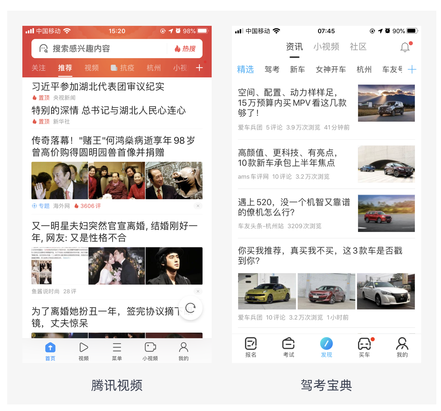 常見(jiàn)的布局方式有左右布局和上下布局,多用于新聞資訊類(lèi)產(chǎn)品中。比如駕考寶典的資訊頁(yè)面,采用上下布局,每條資訊以標(biāo)題為主,搭配輔助圖片,讓用戶(hù)能快速了解內(nèi)容概要;騰訊視頻的資訊板塊則運(yùn)用左右布局,左側(cè)是標(biāo)題和簡(jiǎn)要內(nèi)容,右側(cè)是相關(guān)圖片,便于用戶(hù)快速篩選感興趣的信息。