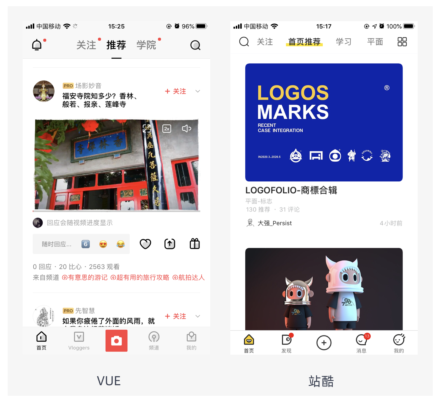 - 展示圖片尺寸固定:不管用戶(hù)上傳的是橫圖還是豎圖,展示圖片的比例始終固定,常用的比例有 1:1、3:2、4:3、16:9 等。這種適配方式圖片占用空間小,可提高用戶(hù)的閱讀效率,適合想要提高用戶(hù)閱讀效率的產(chǎn)品,如站酷的部分頁(yè)面,采用固定比例展示圖片,讓用戶(hù)能在有限空間內(nèi)瀏覽更多內(nèi)容。