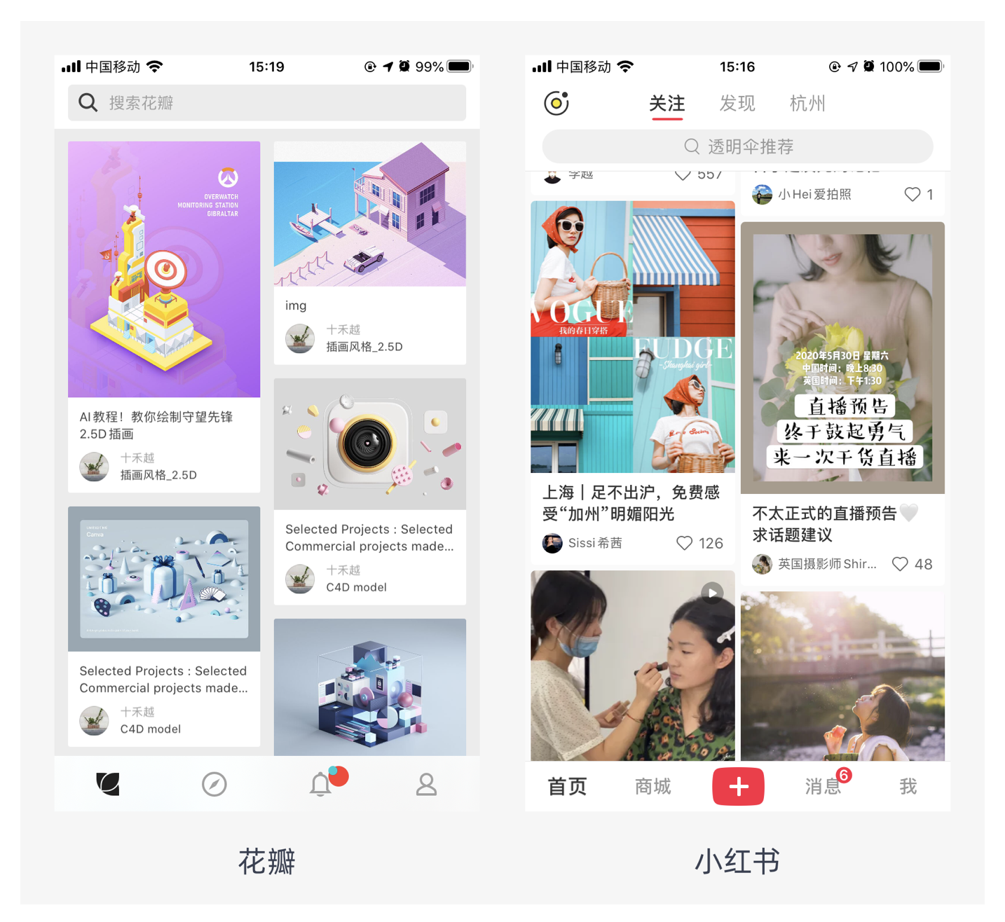 瀑布流式布局的視覺(jué)表現(xiàn)為參差不齊的多欄布局,用戶(hù)的視線軌跡以 Z 型為主,這種軌跡易于閱讀。但由于用戶(hù)采用 “就近原則” 閱讀信息,容易產(chǎn)生漏讀現(xiàn)象。它適用于社區(qū)類(lèi)瀏覽型頁(yè)面,這類(lèi)頁(yè)面往往信息量大,采用瀑布流式布局能讓瀏覽體驗(yàn)更為流暢,如花瓣、小紅書(shū)等平臺(tái),用戶(hù)可以不斷下拉獲取更多內(nèi)容,沉浸在瀏覽過(guò)程中。
