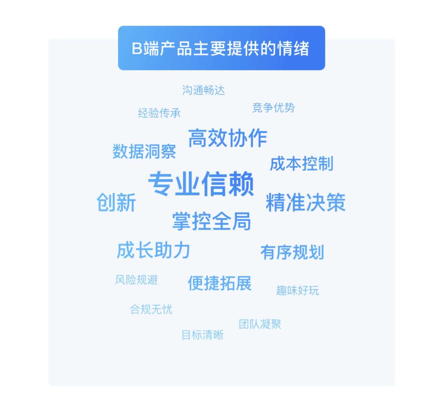 隨著數(shù)字化轉(zhuǎn)型深入,B 端產(chǎn)品的情緒價(jià)值同樣關(guān)鍵,核心聚焦高效與信賴: