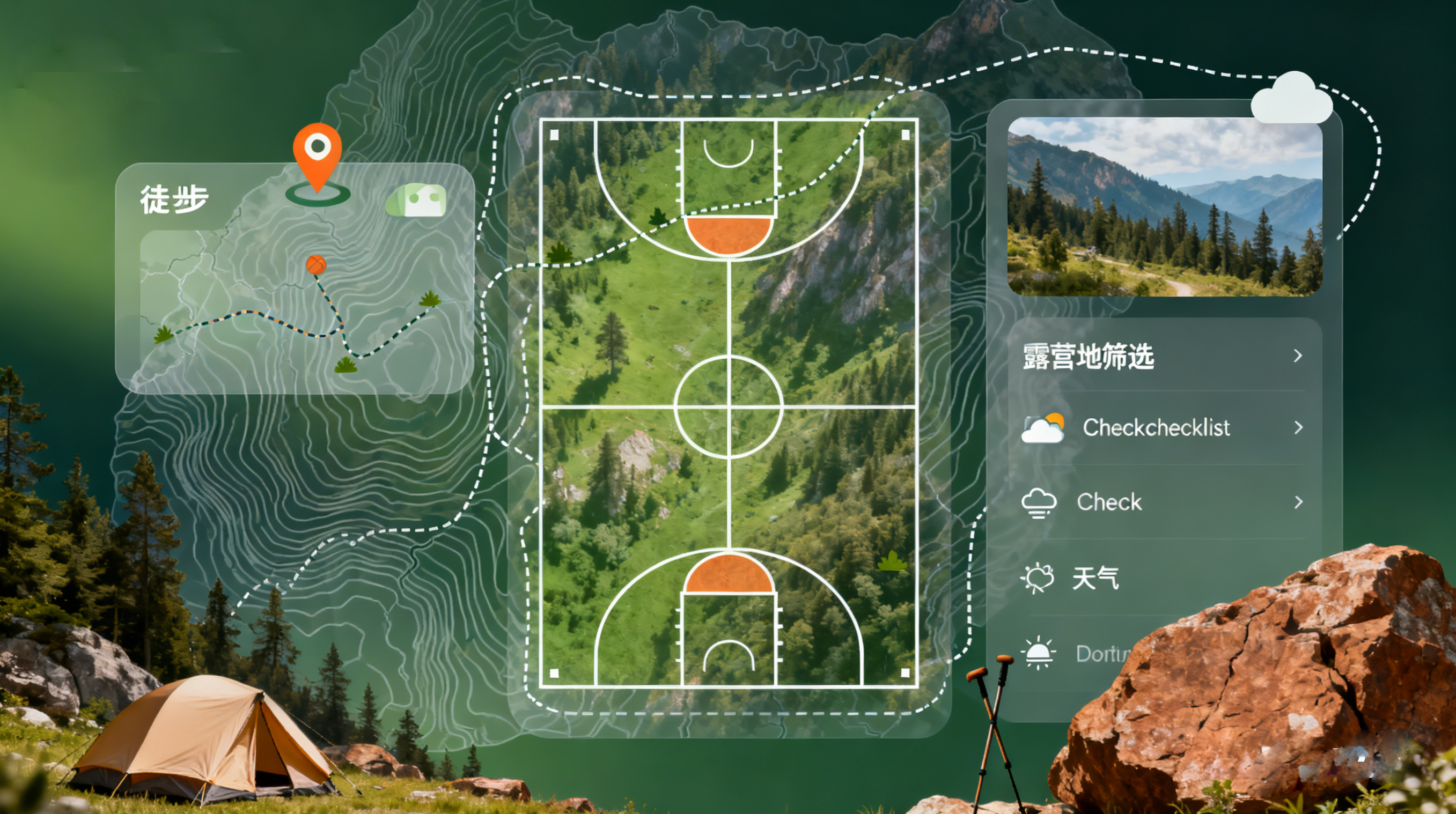(注:圖中展示了旅游類 APP 的場(chǎng)景化設(shè)計(jì),背景融入地圖元素,功能模塊貼合出行場(chǎng)景)