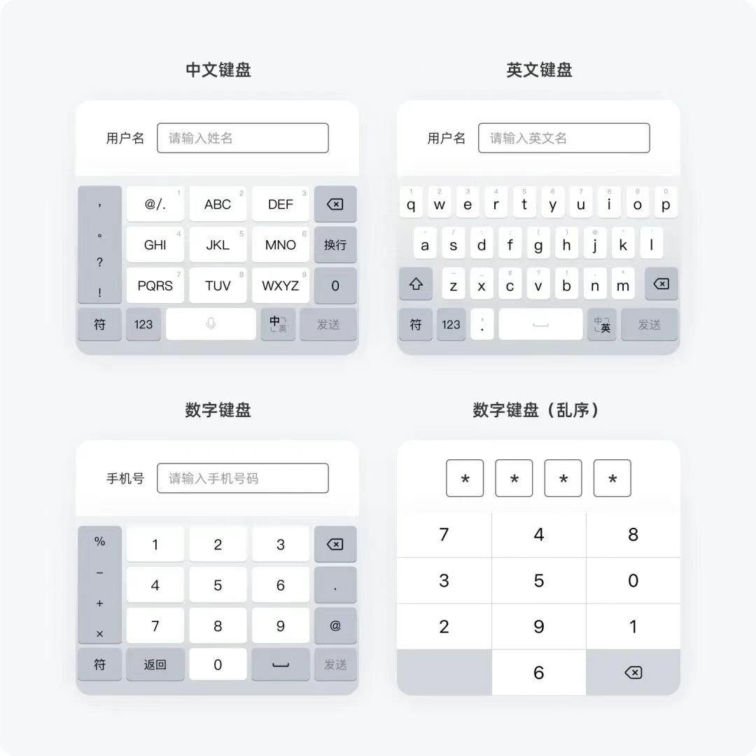 數(shù)字鍵盤(亂序):多用于純數(shù)字密碼類型的輸入需求,對(duì)安全系數(shù)要求較高,如支付密碼等。因出于安全考慮,這類鍵盤雖然會(huì)增加用戶的理解成本,但與財(cái)產(chǎn)的安全性相比,顯然在可接受范圍之內(nèi)。